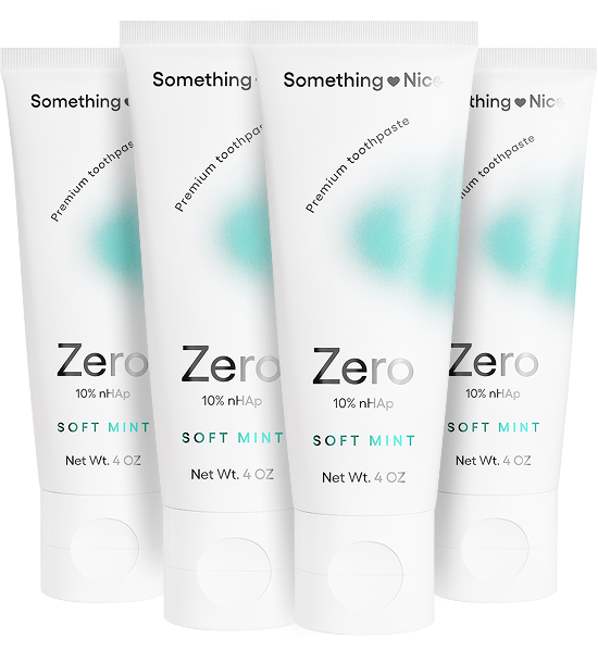 Nano-hydroxyapatite (nHAp) is a biocompatible mineral that's identical to what your teeth are naturally made of. Originally developed by NASA, it works to directly rebuild tooth enamel, while fluoride helps your teeth absorb minerals. At a concentration of 10% (which Zero has), nHAp has been shown to be just as effective as fluoride in preventing cavities while reducing sensitivity.